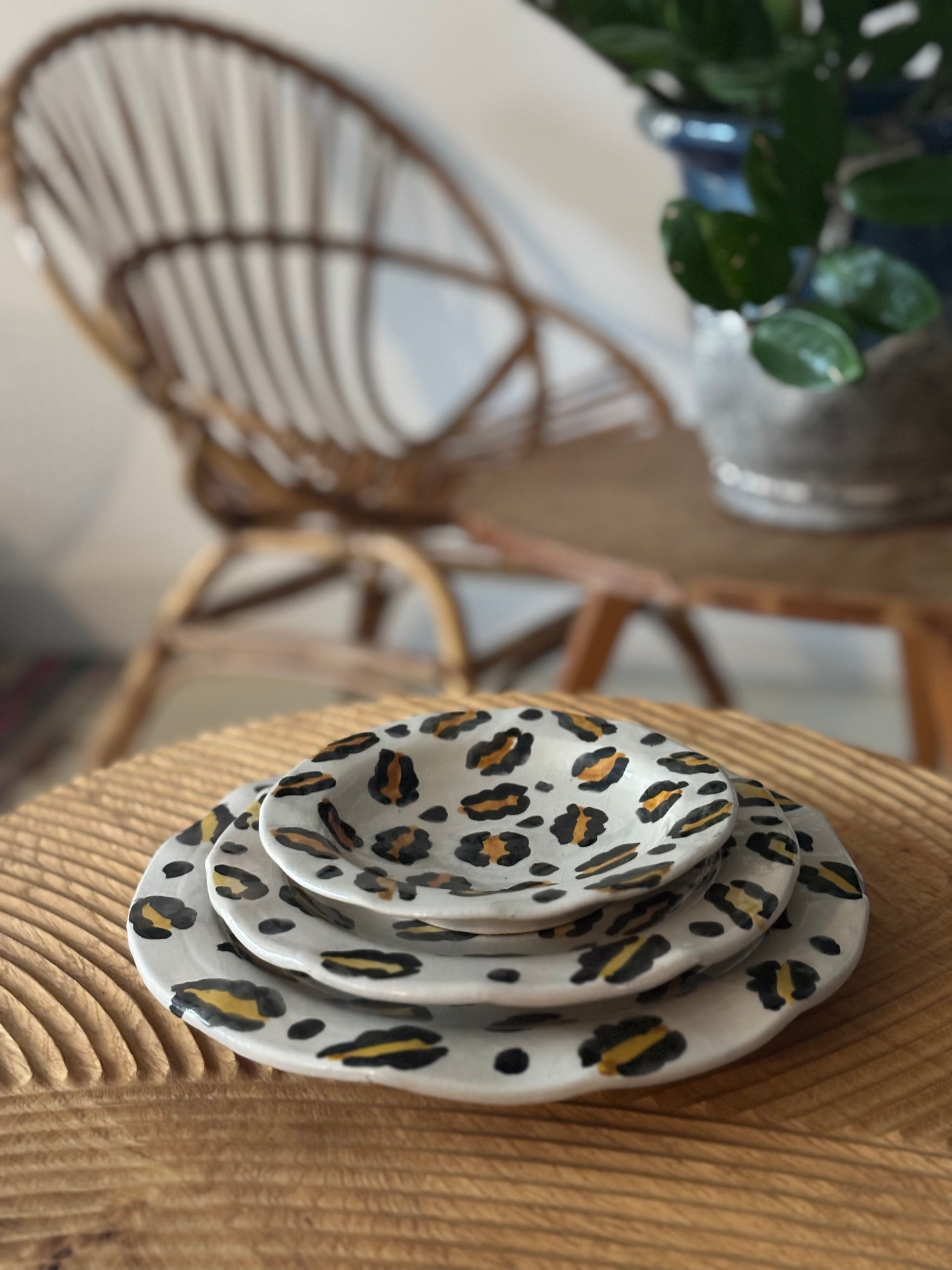Pièce artisanale unique, entièrement réalisée à la main selon un savoir-faire traditionnel marocain. Chaque assiette Léopard est peinte à la main, avec des nuances et des irrégularités qui font tout le charme de l’artisanat. Son motif animal aux tons naturels apporte une touche sauvage, élégante et chaleureuse à votre table.